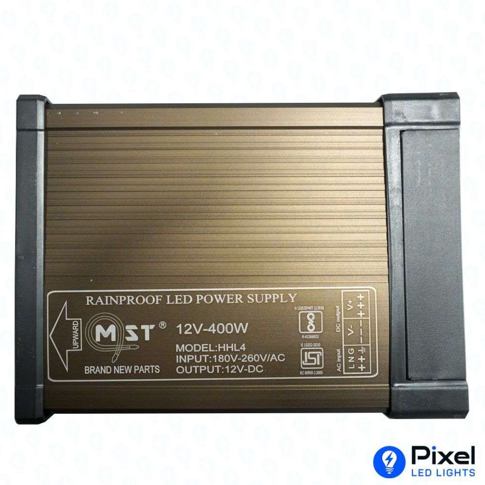The 12V 35A MST Power Supply is a robust and reliable power solution designed for powering large-scale LED lighting systems, CCTV setups, and various 12V DC electronics. With a maximum output of 400W, this unit delivers dependable performance and features a rainproof metal body—ideal for both indoor and outdoor environments.